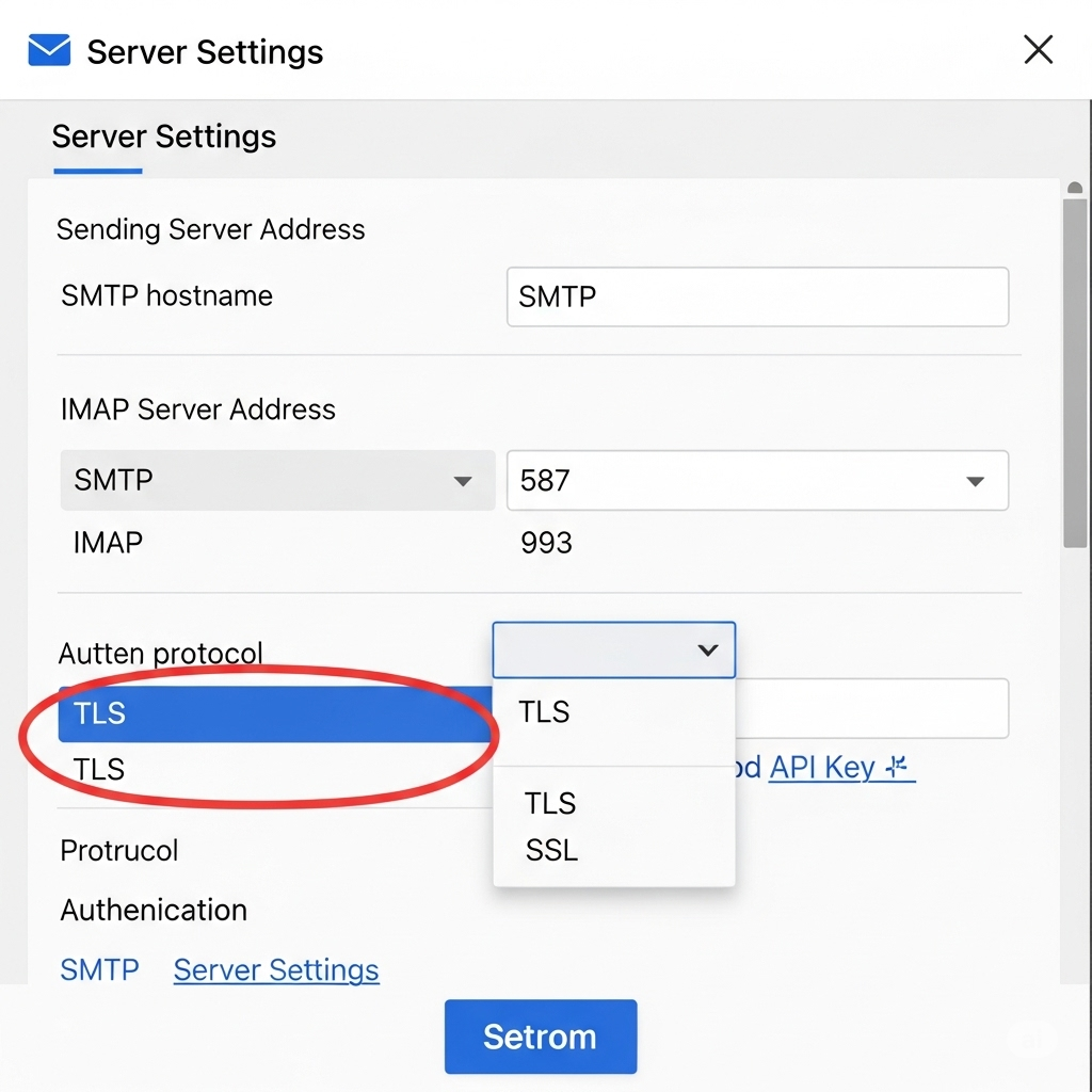 ) y el número de puerto (comúnmente 993 para IMAP SSL/TLS o 995 para POP3 SSL/TLS).